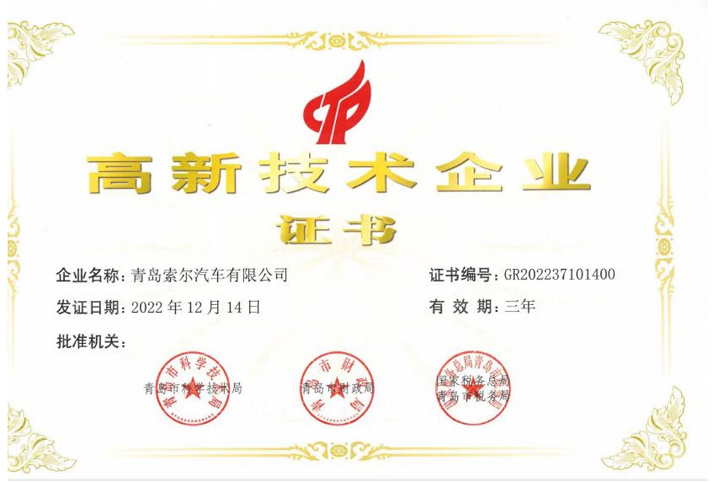 青島索爾汽車有限公司 產品碳足跡證書 公示